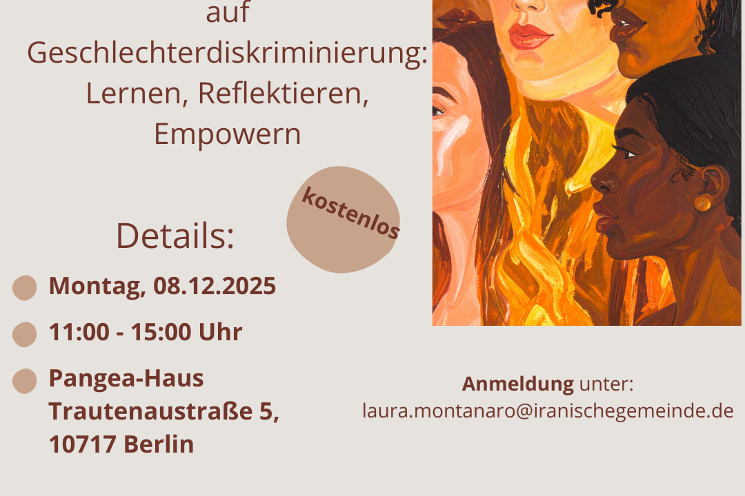 Die Iranische Gemeinde in Deutschland e.V. lädt herzlich zum kostenlosen Workshop „Intersektionale Perspektiven auf Geschlechterdiskriminierung: Lernen, Reflektieren, Empowern“ ein.